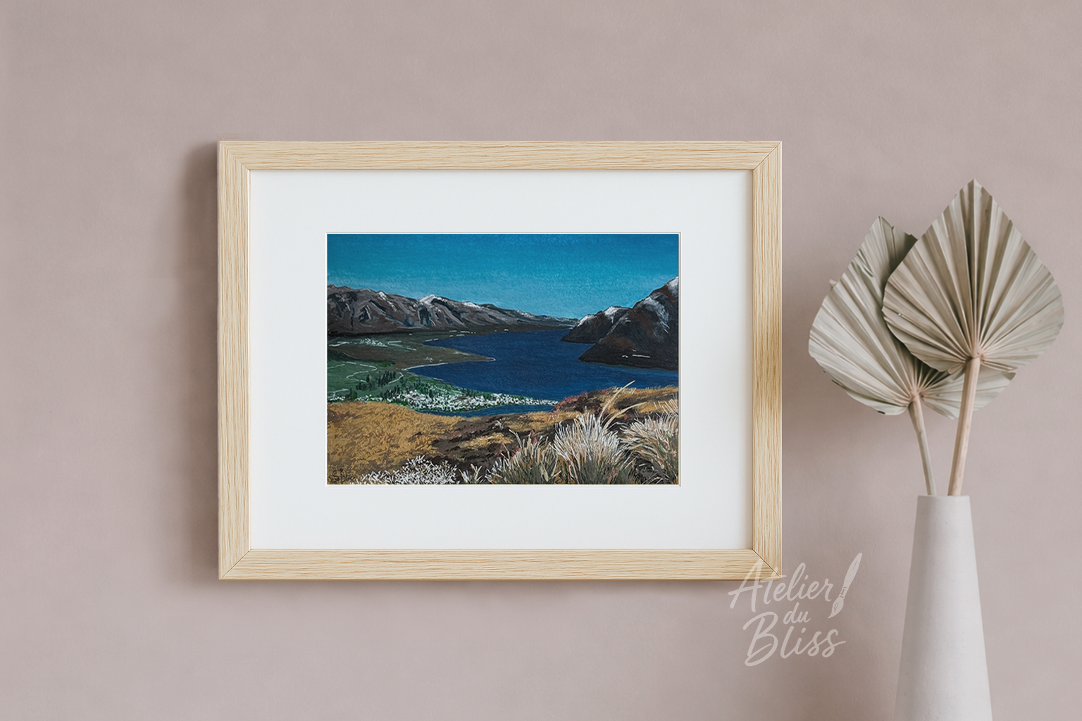 Original A5 gouache painting inspired by Queenstown’s Lake Wakatipu. One-of-a-kind artwork on watercolor paper, hand-signed and shipped from New Zealand.